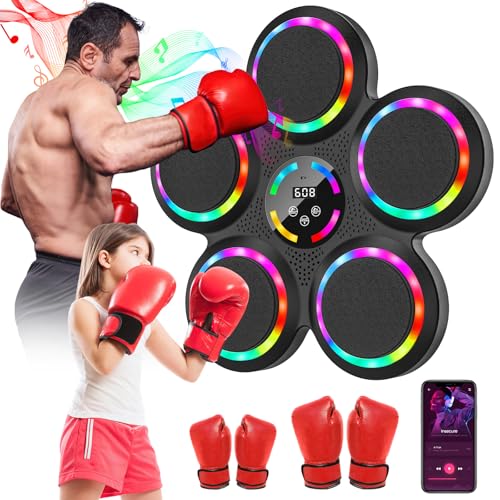 Music Boxing Machine,Bluetooth Music Boxeur électronique, entraînement, Équipement, Jeux de Boxe muraux pour Enfants et Adultes (Gants de Boxe Adultes)