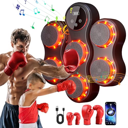 Fulluky Music , Music Electronic Boxes Wall Target Boxing Machine, avec 6 lumières et capteur Bluetooth, appareils d'entraînement à la boxe avec gants de boxe (gants pour adultes B)