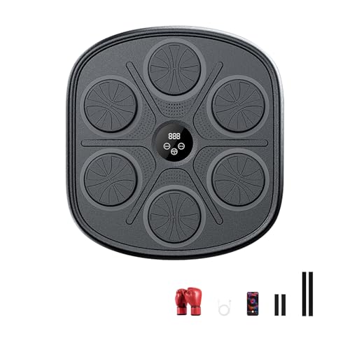 Machine de Boxe Musicale, Music Boxing Machine Enfants, Appareil de Boxe électronique Mural, Affichage LED, Mode comptage Prise en Charge Bluetooth, Musicboxing pour Entraînement à la Maison, 6 Cible