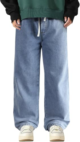 Jeans Baggy Garçons Large Jean Baggy Jean Baggy Fit Plain Street Style Large Jambe Droite Pantalon Décontracté Bleu Clair Jeans Noirs Boyfriend Style Pantalon en Denim, Lightblue, L