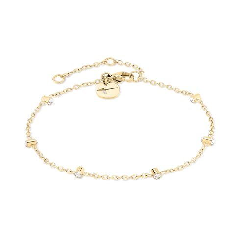 JEWELS BY LEONARDO Ciao Otella 024449 Bracelet en acier inoxydable doré avec inscription « Love » serti de pierres de zircone Longueur 18-21 cm Bijou pour femme, Eine Grösse, Acier inoxydable, Pas de