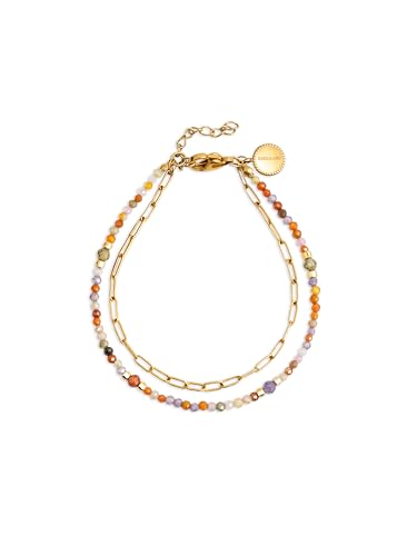 SINGULARU - Bracelet Double Crystal Summer. Acier avec plaqué or 18Kt et détails en cristaux colorés. Longueur : 21 cm. Bijoux pour femme