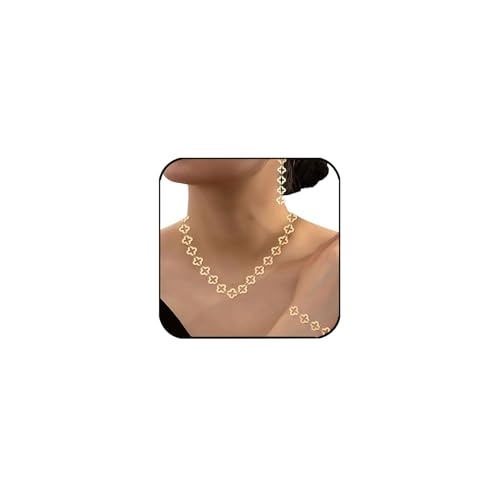 JENCVNL Ensemble de Bijoux Trèfle à Quatre Feuilles pour Femme Fille, Or Trèfle à Quatre Feuilles Collier Trèfle à Quatre Feuilles Boucles d'oreilles Trèfle à Quatre Feuilles Bracelet (Or-3)