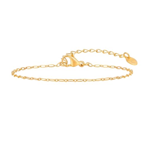 Beydodo Bracelet en Acier Inoxydable Doré Femme, Bracelet Chaîne Fin Plaqué Or Ajustable Longueur 16+5 cm, Largeur de 1.5 mm, Bijoux Femme