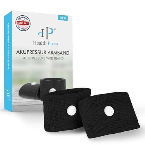 Health Press Set de bracelets d'acupression : Deux bracelets d'acupression – Convient à tous les poignets grâce à un ajustement optimisé – Bracelet d'acupression