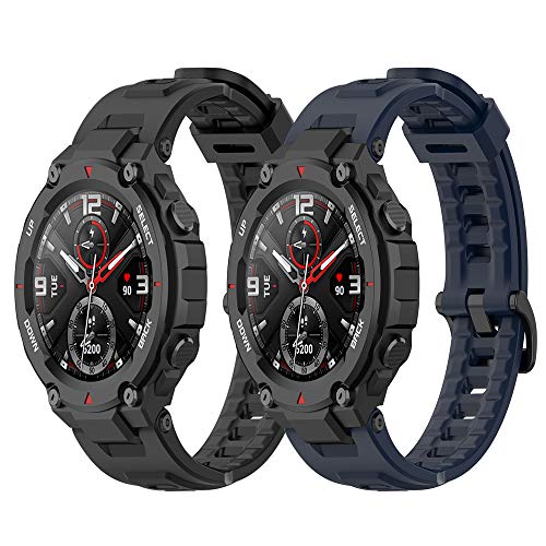 Yikamosi Compatible avec Amazfit T-Rex/T-Rex Pro Bracelets,libération Rapide Silicone Souple Fermoir en Acier Inoxydable Remplacement Bracelet pour Amazfit T-Rex A1918/T-Rex Pro,Noir+Bleu Nuit