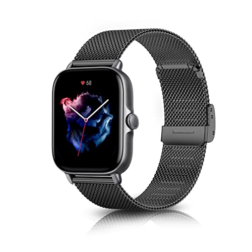 ToVioc 20mm Bracelet Compatible avec Amazfit Active/GTR Mini/GTS 4 Mini/GTS 4/GTS 3/GTS 2 Mini Bracelet en maille réglable en acier inoxydable Compatible avec Amazfit Bip 3/Bip 3 Pro - Noir