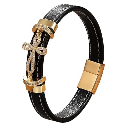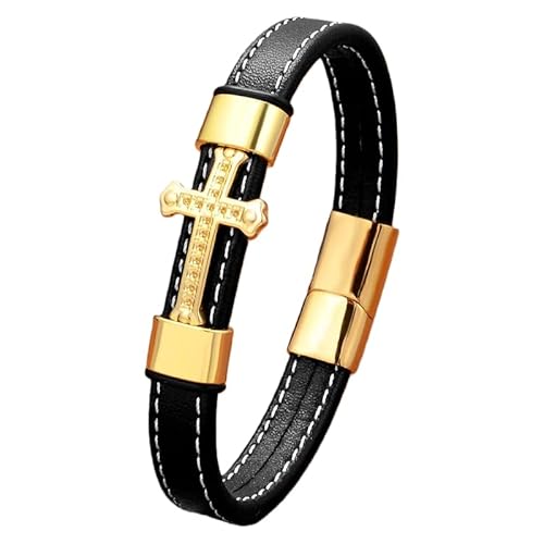 HUIANGLIYG Bracelet En Cuir Avec Croix Pour Homme Et Femme, Bijou Religieux Avec Fermoir Magnétique, Style Punk, Idéal Pour Les Fêtes, Couleur Or, 5, 19 Cm