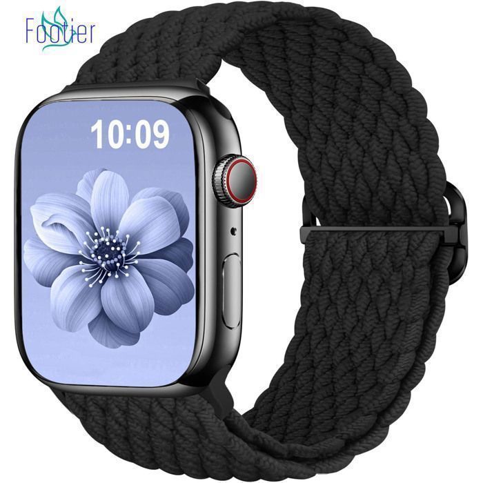 Bracelet pour Apple Watch 38mm/40mm/41mm Series 9 8 SE 7 6 5 4 3 2 1 42mm(Serie 10/11) - Boucle Unique Tressé Noir - Taille M