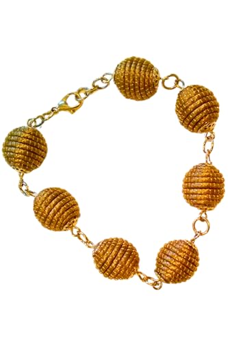 Nativilis - Bracelet fait main avec sphère d'herbe dorée - Bijoux brésiliens respectueux de l'environnement - Artisanat durable Jalapão - B106