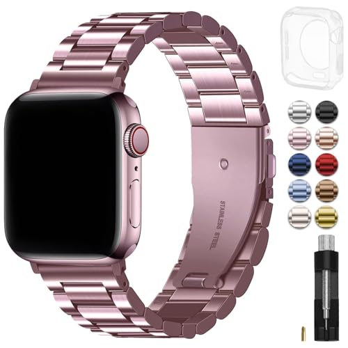 Fullmosa Bracelet Compatible avec Apple Watch 44mm 45mm 42mm(Series 3/2/1), Bracelet iWatch en Acier INOX pour Apple Watch SE3/2/1 Series 9/8/7/6/5/4/3/2/1(Rose,42mm/44mm/45mm)