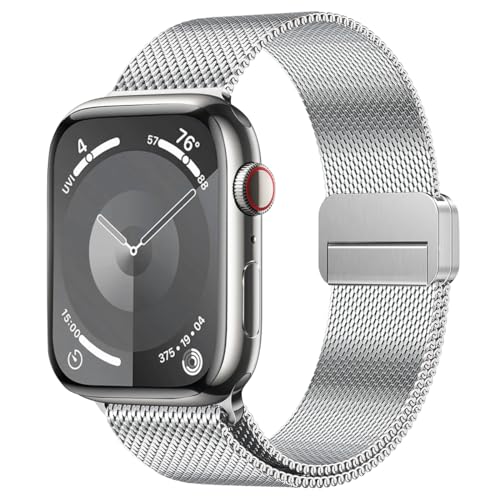 TALK WORKS Bracelet compatible avec Apple Watch 42 mm/44 mm - Confortable - Boucle en maille en acier inoxydable - Réglable - Magnétique - Pour iWatch Series 6, 5, 4, 3, 2, 1, SE - Argenté