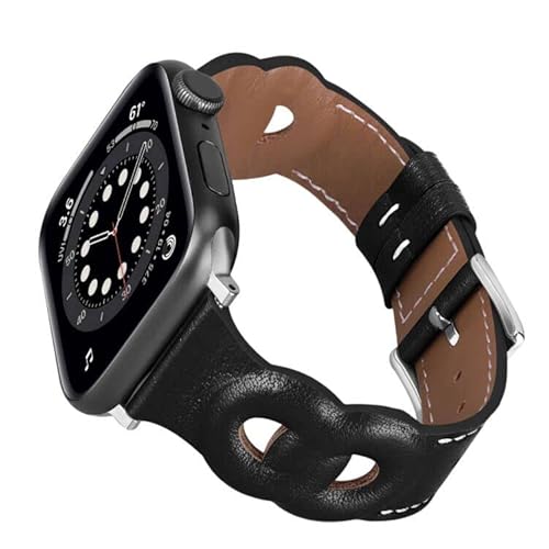 MroTech Bracelet Compatible avec Apple Watch 49mm 45mm 44mm 42mm Bracelet de Remplacement pour iWatch Série 8 7 6 5 4 3 2 1 Band Bande de Montres Cuir véritable Femme Homme-Chic Noir