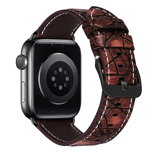 MroTech Bracelet Compatible avec Apple Watch 42mm 44mm 45mm 49mm Ultra Bande de Remplacement pour iWatch Série 8/7/6/5/4/3/2/1/SE Bracelet Cuir Véritable 42/44/45/49 mm nostalgique Brun foncé