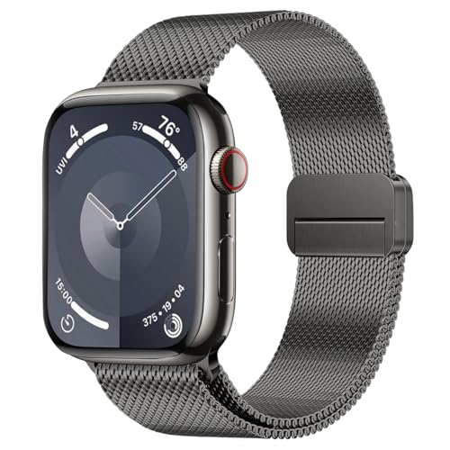 MroTech Métal Bracelet Magnétique Compatible avec Apple Watch 49mm 45mm 44mm 42mm Femme Homme, Acier Inoxydable Métal Compatible pour iWatch Series 9 8 7 6 5 4 3 2 1 SE/SE2/Ultra/Ultra2, Carbon