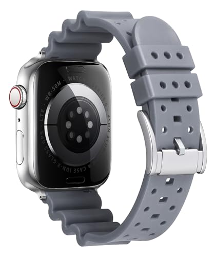 Bracelet compatible avec Apple Watch 42 mm 44 mm 45 mm, bracelet en silicone respirant pour iWatch SE Series 7 6 5 4 3 2 1 - Gris, gris, 42 mm/44 mm/45 mm