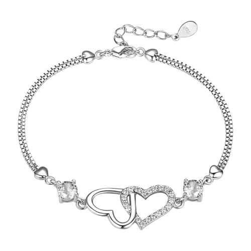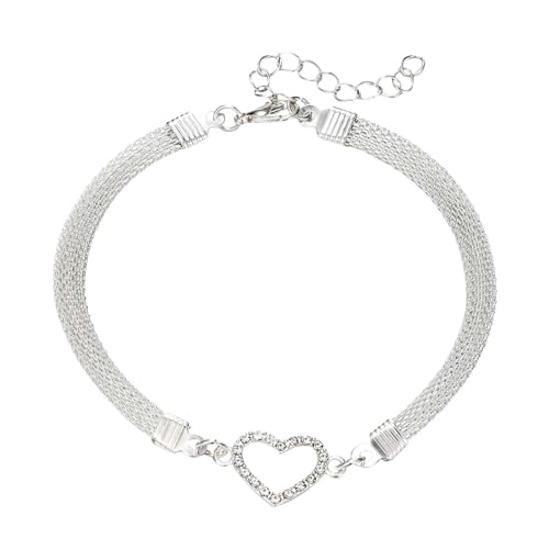 Générique Couple Bracelets Messages Bijoux Bracelet argenté Bracelet en de coeur plein strass Bracelet ajustement bracelets pour femme Jonc Connecté Acier Naturelle Bijoux (Silver, One Size)