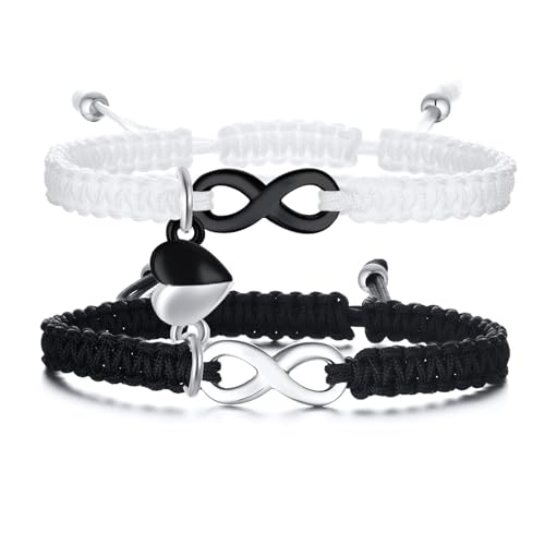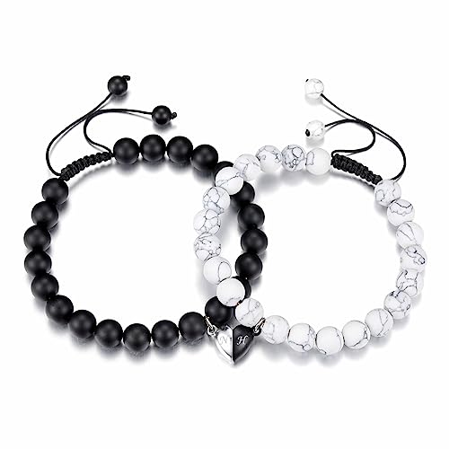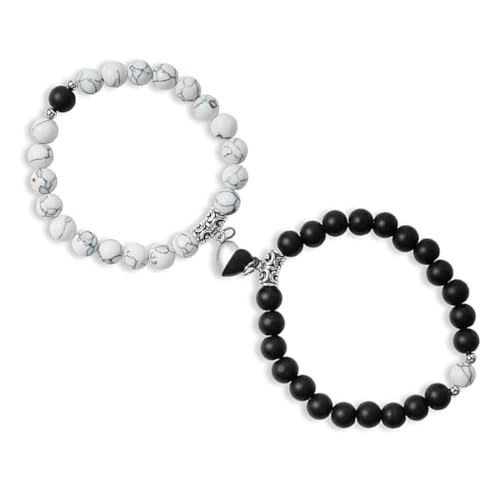 Luckeey Cadeau Couple, 2PCS Bracelet Couple, Cadeau Mariage Magnetique Bracelet Connecté Couple mit Noir et Blanc Classique pour Anniversaire CadeauPaques
