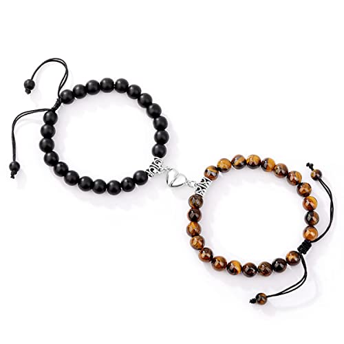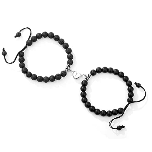 GGUFAY 1 Paire Magnetique Bracelet pour Couples Connecté Perles Bracelet pour Homme Femme Pierre Naturelle Bracelet Couple Amoureux pour Bracelet Magnetique boite cadeau Cadeau de Saint-Valentin