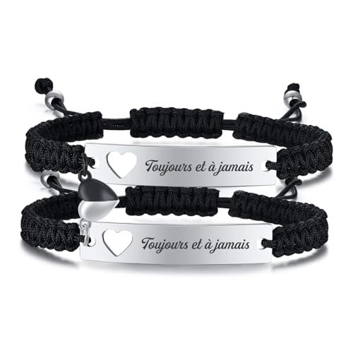 Bracelet Couple Amoureux Personnalisé - Connecté Je t'aime Matching Magnétique Distance Cadeau pour Soeurs Amis Famille Anniversaire Noël