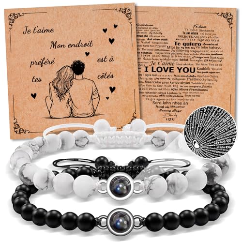 Luckeey 2PCS Bracelet Couple, Cadeau Couple Je t'aime 100 Langues Bracelet Connecté Couple, Cadeau Saint Valentin