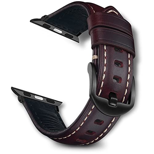 RoYiio Bracelet Cuir pour Apple Watch 42mm/44mm/45mm/46mm/49mm Bracelet en Cuir Ciré à l'huile pour Bracelets Apple Watch Ultra 3/2, SE 3/2, Series 11/10/9/8/7/6/5/4/3/2/1 - Vin Rouge