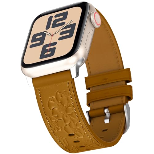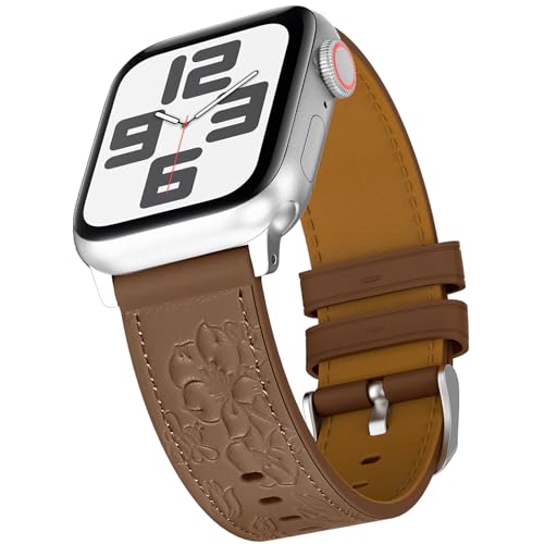 Cuir Bracelet pour Apple Watch SE 2 40mm Bande, Fleurs Gravées Vintage Réglables Cuir Véritable Bracelets pour Apple Watch 42mm 41mm 40mm 38mm Bracelets pour iWatch Series 10 9 8 SE2 7 6 SE 5 4 3 2 1