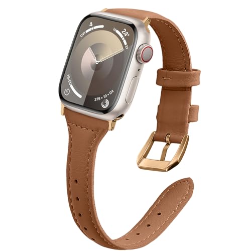 Bracelet Cuir Etroit pour Apple Watch 38/40/41/42/44/45/49mm, Bracelet Remplacement Cuir Fin Véritable Femmes pour Apple Watch SE/iWatch Series 9 8 7 6 5 4 3 2 1 (38/40/41MM, MARRON)