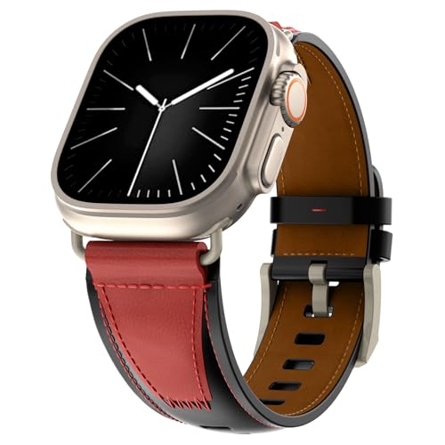 CeiBand Cuir Bracelet pour Apple Watch Series 11 46mm/49mm/42mm/44mm/45mm, Boucle en Inoxydable, Doux Confortable Cuir Bracelet pour iWatch Ultra3/Series 11 10 9 8 7 6-1 SE3 Homme - Rouge