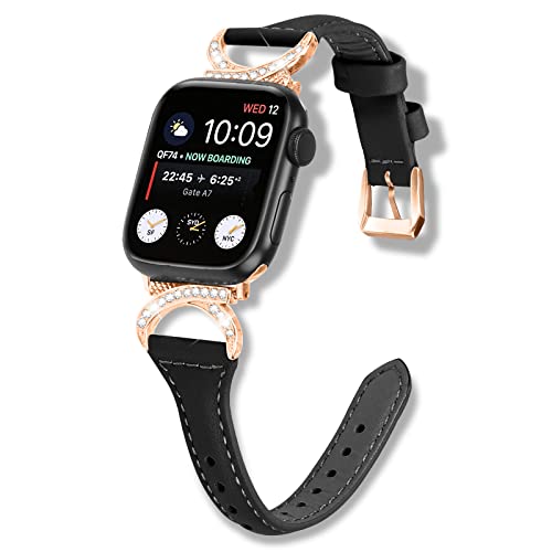 WoPail Bracelet Cuir Femme pour Apple Watch 42mm 41mm 40mm 38mm pour Apple Watch SE 3/2/1 40mm pour iWatch Series 11/10/9/8/7/6/5/4/3/2/1 Mince et Léger Bracelet de Remplacement Noir