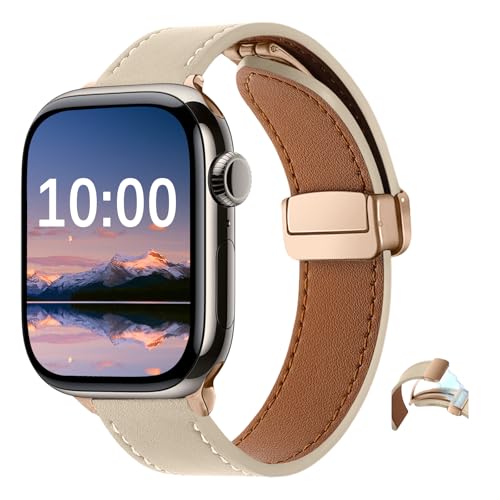 SeNool PU Cuir Bracelet pour Apple Watch 38mm 40mm 41mm 42mm Series 10/9/8/7/6/5/4/3/2/1, Bande Réglable Magnétique Bracelet de Remplacement Cuir pour iWatch SE 3/SE 2/SE-Abricot