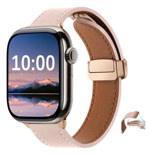 SeNool PU Cuir Bracelet pour Apple Watch 38mm 40mm 41mm 42mm Series 11/10/9/8/7/6/5/4/3/2/1, Bande Réglable Magnétique Bracelet de Remplacement Cuir pour iWatch SE 3/SE 2/S-Rose