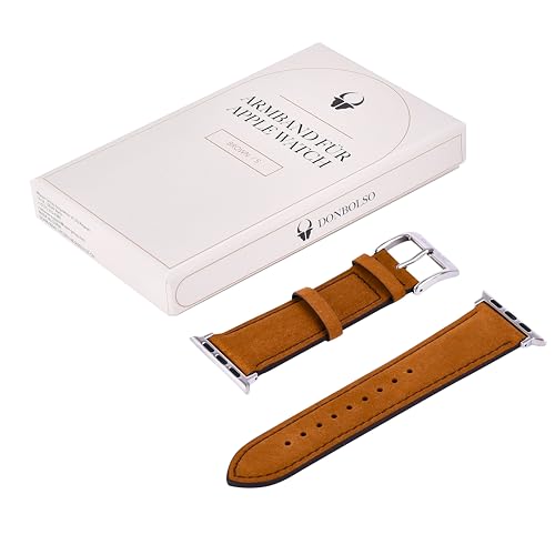 DONBOLSO Bracelet en cuir pour Apple Watch - Cuir véritable, boucle en acier, compatible 38-41 mm et 49 mm, taille S, marron
