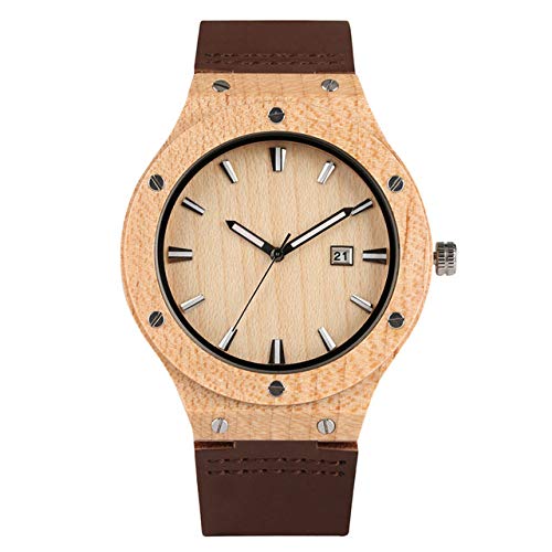 OIFMKC Montre en Bois Rouge en Bois/Bambou Hommes Montres en Bois Quartz Affichage de la Date Homme Montre-Bracelet en Cuir Bande Montres Homme Horloge Cadeau-Bambou