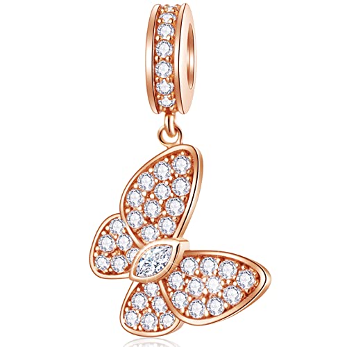Pendentif papillon en or rose pour bracelet femme pandora, perles mariposa en argent sterling 925 pavé brillant cz butterfly pendentif, cadeaux pour amoureux des insectes/sœur/jour de pâques