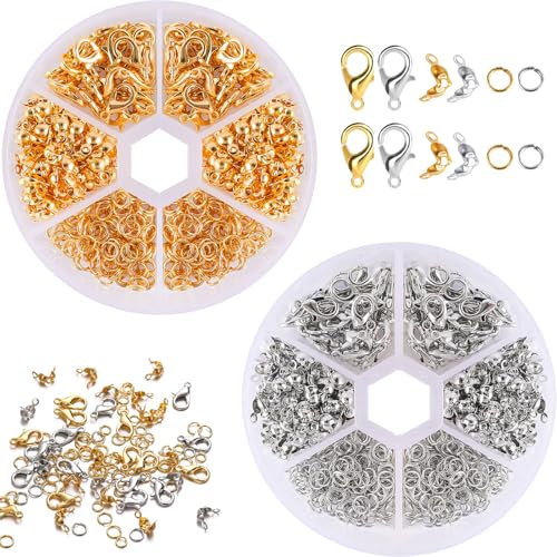 Yikki Lot de 1140 Fermoir Bracelet, Collier Attache Perle Creation Bijoux, Lobster Clasps Fabrication Bijoux, Fermoirs Bracelet Colliers acier Inoxydable, or et argent