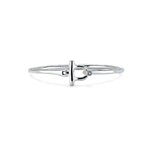 UNOde50 Bracelet rigide avec fermoir frontal plaqué argent avec topaze blanc central