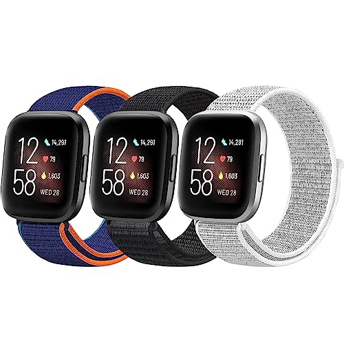 chinbersky 3 Pack Nylon Bracelets Compatible avec Bracelet Fitbit Versa 2/Fitbit Versa Bracelet Femme Homme, Réglable Sport Bracelet de remplacement Pour Fitbit Versa 2/Versa/Versa Lite/SE