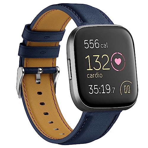 KoGiio Bracelet pour Fitbit Versa 2/ Fitbit Versa, Hommes et Femmes Vintage de Cuir Bracelet de Remplacement pour Fitbit Versa 2 / Fitbit Versa -Bleu