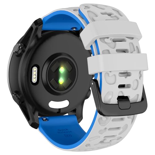 Waekethy Bracelets pour Forerunner 255/265 Music, Bracelet Montre 22mm Silicone Remplacement Bracelet Compatible avec Garmin Vivoactive 4/Venu 2 (Blanc/bleu + Noir/bleu)