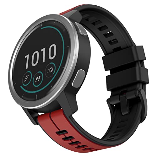 FTRONGRT 22mm Bracelet pour montre Garmin Vivoactive 4, Silicone Bracelet, Sangle de Remplacement pour Garmin Vivoactive 4. Rouge Noir