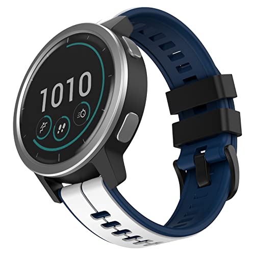 Yikamosi Compatible avec Garmin Vivoactive 4 Bracelet,22MM Slibération Rapide Silicone Souple Fermoir en acier inoxydable Remplacement Bracelet pour Garmin Vivoactive 4/Venu 2,Blanc+bleu nuit