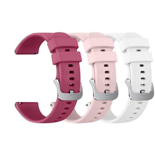 Coiwxmoi Bracelet pour Garmin Vivoactive 4S / Venu 3S / Venu 2S / Forerunner 265S / 255S / 255S Music/Vivomove 3S, 20mm Souple Silicone Bracelets Sport Remplacement pour Femme Homme, Rose