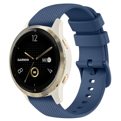 Amzpas Bracelet Compatible avec Garmin Vivoactive 4S, Venu 2S, Vivomove 3S - Sport Silicone Souple pour Garmin, Bleu Marine