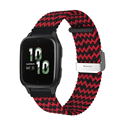 Niboow 20mm Bracelet pour Garmin Venu Sq 2/Venu Sq 2 Music/Venu 2 Plus/Venu Sq/Venu Sq Music, Tissé Respirant Bracelet pour Garmin Vivoactive 5/Vivoactive 3 Music/Forerunner 245-Noir/Rouge