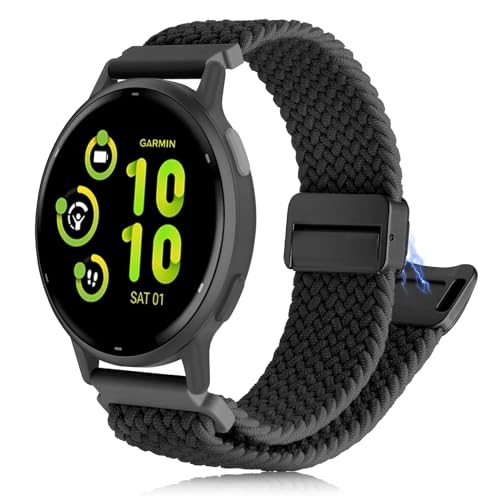 CHULN 20mm Bracelet Compatibles avec Garmin Vivoactive 5/3/3 Music/Vivomove Trend/Venu Sq 2/2 music/Venu 2 Plus, Magnétique Bracelet de Rechange en Nylon pour Garmin Vivoactive 5.