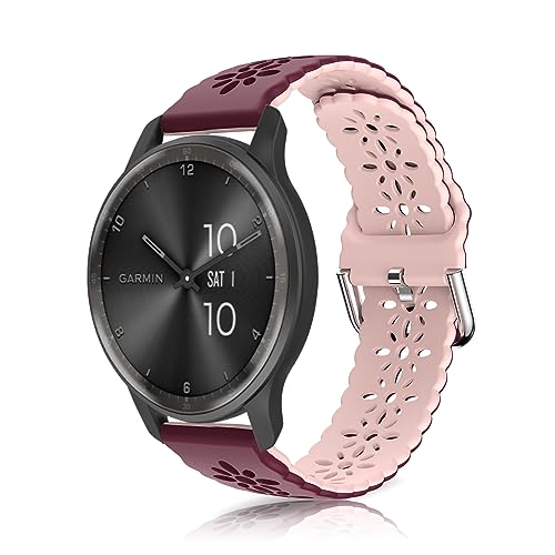 KoGiio 20mm Bracelet pour Garmin Vivoactive 6/5 /Garmin Forerunner 165/Forerunner 165 Music, Soft Silicone Respirant Sangle Bracelet Rouge & Rose