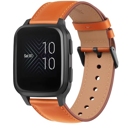 Wanme Cuir Bracelet Compatible pour Garmin Vivoactive 5/Garmin Venu Sq 2/Venu Sq/Venu 2 Plus/Venu Sq Music/Venu Sq 2 Music Homme Femme, Bracelet de Remplacement avec Vivoactive 3, Brun Orangé