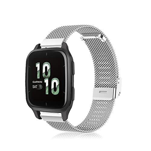 Niboow 20mm Métal Bracelet pour Garmin Venu Sq 2/Venu Sq 2 Music/Venu 2 Plus/Venu Sq/Venu Sq Music, Métal Acier Inoxydable Bracelet pour Garmin Vivoactive 5/Vivoactive 3 Music/Forerunner 245 - Argent