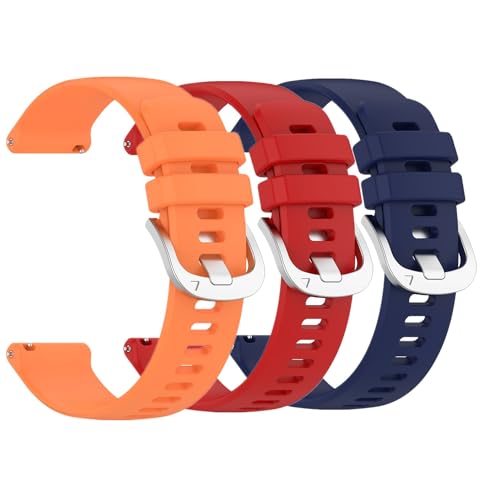 Huwokxix 20mm Bracelet Compatible avec Garmin vivoactive 5/forerunner 245/vivoactive 3,Ajustable Silicone Sport Band Remplacement Bracelet (Orange + Rouge + Bleu foncé)